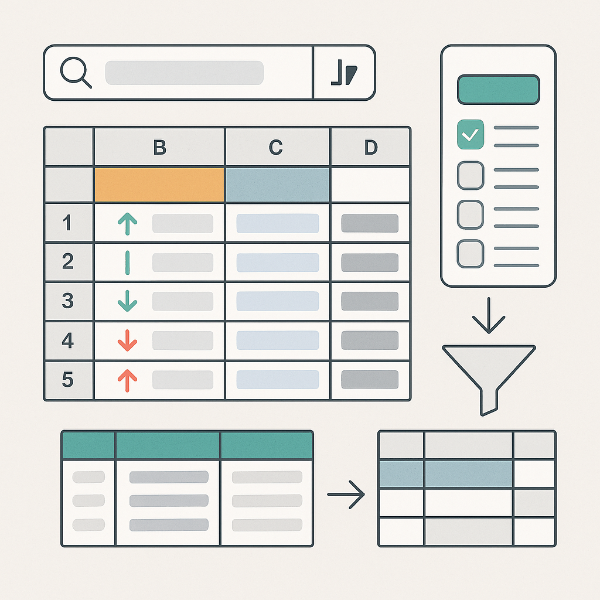 이 글은 실무에서 바로 쓰도록 ① 정렬: 버튼·함수·사용자 지정 정렬 → ② 필터: 기본 필터·필터 보기·슬라이서 → ③ 함수형 필터: SORT/FILTER/QUERY로 동적 표 만들기 순서로 정리합니다. 각 섹션마다 현장 예시, 오류 원인/해결, 체크리스트를 곁들여 “정렬·필터만 잘해도 보고서 품질이 달라지는” 실전 감각을 드리겠습니다.