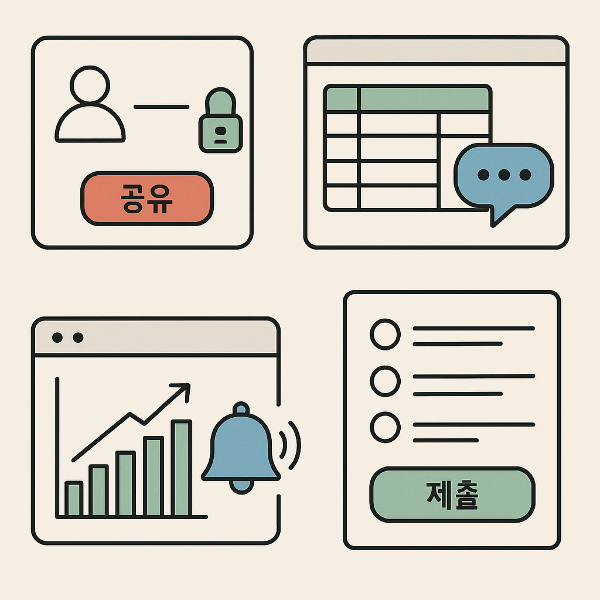여기까지가 협업과 자동화의 기본입니다. 중요한 점은, 이 모든 기능을 꼭 한 번에 구현할 필요는 없다는 것입니다. 오늘은 공유 권한과 댓글만, 다음 주에는 폼 입력과 알림만, 그다음 달에는 자동화 한 가지를 더하는 식으로 단계적으로 확장하면 됩니다. 작게 시작하고, 규칙을 지키고, 반복을 도구에 넘기면, 스프레드시트는 곧 당신의 운영 시스템이 됩니다.