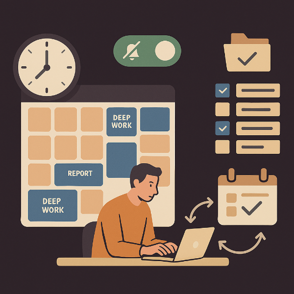 - 블록 규격: Deep Work 90분(몰입), 일반 작업 60분, 경량 작업 30분. 하루에 Deep Work는 1~2블록이면 충분합니다.