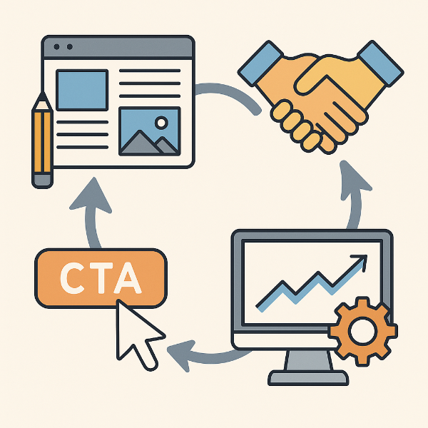 성과를 만드는 글의 공통점은 뚜렷합니다. 제목은 키워드 앞배치+결과 약속으로 클릭을 부르고, 본문은 H2/H3 계층·3~6줄 문단으로 읽히며, 이미지에는 ALT·캡션이 달려 있습니다. 그리고 상·중·하단 CTA 3점이 독자의 행동을 안내하죠. 전환형 글(비교/튜토리얼)에는 문맥형 제휴 링크를, 디지털 상품에는 문제→설루션→데모→후기→FAQ→CTA 랜딩 구조를 적용하세요. 투명성도 잊지 말아야 합니다. 제휴 표기(rel="sponsored nofollow"