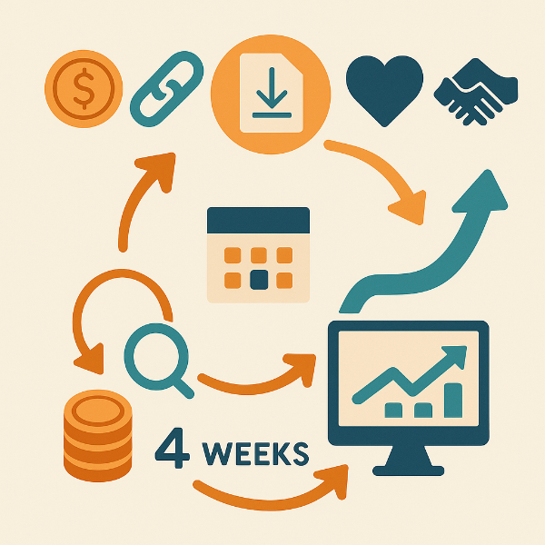 - 4주차 — 데이터 리뷰(CTR·전환·환불) · 번들/쿠폰 테스트 · 다음 달 계획 수립